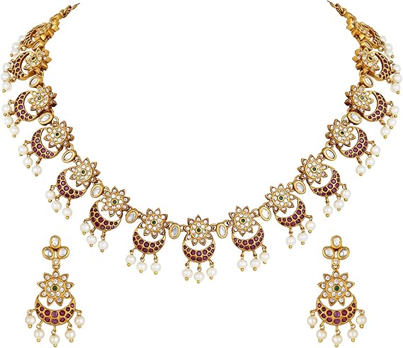 Amazon Aheli エレガント 南インド風 ウェディングウェア フラワーデザイン フェイクストーン クラフトネックレスセット ボリウッドパーティー エスニック ファッションジュエリー 女性用 ネックレス 通販