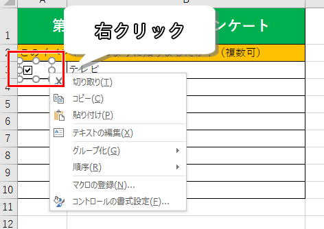 チェックボックスサイズ変更 チェックボックスコントロールの書式設定 Excel エクセル 教えて Goo
